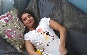 This young cutie pie is sleepy and horny and when she starts caressing her hard nipples and clit she can't even tell if it's a dream or all real. I couldn't just keep my hands on a camera and helped her cum by finger-fucking that juicy pink pussy.
