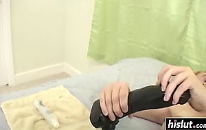 Her bouncy boobs jiggled while she shoved a dildo in her pussy.