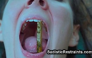 Poor bondaged slave girl is totally helpless alone with a freak in the woods!