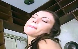 A young girl is standing in front of the camera. She moves about, stroking her body all over and even slapping her ass. She lifts up her shirt and plays with her nipples. When she is naked she pulls a chain of golden balls from her pussy.