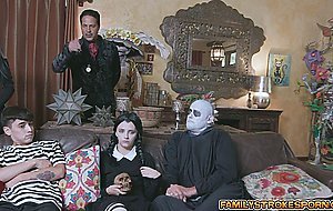 7:54The ghouls solve the problem the only way a supernatural family knows. They head to the master bedroom and have an undead orgy! Kate gets pounded by her horny stepdad while Audrey the MILF enjoys her stepsons hard cock. Even their not quite uncle Fester gets in on the nasty fun. Happy Halloween