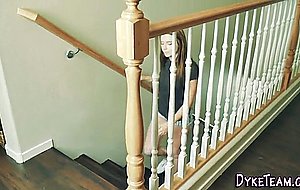 Blonde teenager scissors and tongued