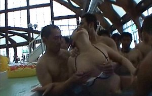 Helpless young japanese girl in bikini gets undressed, kissed and fingered by at least 20 silly perverts at a waterpark!