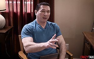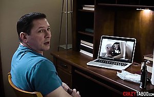 Teen stepdaughter Kenna James interrupts her stepfather John Strong who is watching porn She requests her stepdad to impregnate her but the old man hesitates at first But after her constant plea he lets her suck his cock then licks her pussy and fucks her
