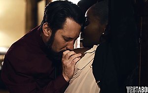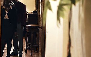 Real estate agent Osa Lovely showing a wealthy prospective buyer around a house that she is selling She leads him into the living room talking about the various features of the house such as the crown moldings the natural light and the brand new tiling