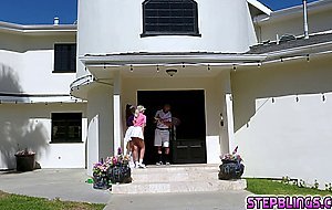 Allie Nicole and Athena Faris sneak by one of their idols security and knock on his front door He usually hates visitors but when he sees how hot the babes are he invites them inside They start making out as their pussies soak through their panties
