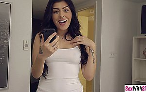 Teen stepsister Audrey Royal is fascinated by her stepbrothers big dick and asks him if she can touch it She likes what she sees and sucks his dick then she turns around and lets him peel her thong and shorts off so he can fuck her bare twat from behind