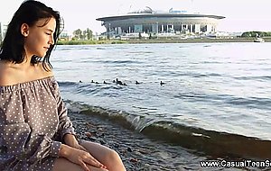 It takes this guy one romantic gesture to get this teen brunette naked and boy, does he make her moan of pleasure as he fucks her pussy and ass repeatedly. She gives head like a cougar and rides cock like a champion, but nothing compares to this tight and smooth feeling he gets when his cock slides deep into her welcoming chocolate hole. Going ass to mouth and giving her a facial makes a perfect finale of this great casual encounter. Bravo!