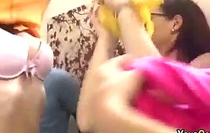 Amateur college chicks get topless and give blowjobs