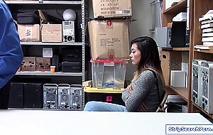 A brunette teen gets caught stealing condoms.She undergoes strip search operation then begs the officer not to call the cops.In return,she blowjobs his big cock then sucks his balls.The guy rubs her small tits then starts fucking her shaved pussy.