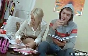 Do you agree that it's not interesting to learn boring subjects, when you have a chance to fuck this pretty babe? Well, this guy has made his choice - instead of helping her doing her homework, he will teach her naughty ass how to accept his huge pecker! Well, she isn't against it, and she is screaming from this dirty anal penetration!