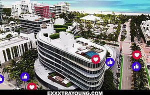 Naughty petite Influencer Scarlett Hampton steps up her newest vlog while doing exercise with fitness instructor Duncan Saint. When Duncan caught her doing the naughty deed, he isn't hard to participate, fucking her tight pussy.