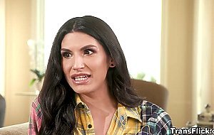 They kiss and Zariah gives Michael a blowjob Eager to return the favor Micheal then takes out Zariahs pretty cock so he can give her a blowjob as well To warm them up even further Zariah rubs their cocks together getting them all revved up