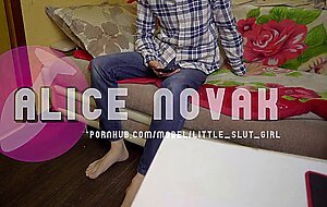 Alice Novak - Stepsister gives difficult blowjob and tries effort as birthday gift to her stepbrother ! swallow Cum !