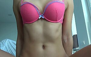 Watch this hot amateur babe in fishnets grind and rub her dripping wet pussy all over her man's big cock, begging for his cum. This kinky teen loves a good hardcore fuck and a huge load on her pussy!