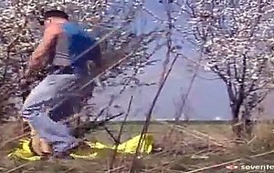 A guy is walking around in a field looking for his girlfriend who suddenly jumps out of her hidng place. A little later they are both on the ground where the girl sucks his dick. He then fucks her in various positions until he comes in her face.