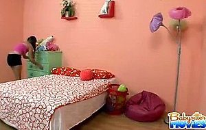 Hot brunette latina babysitter Gina is caught sleeping on the bed