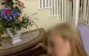 Pale blonde Gwen Diamond pleasures her lover in living room