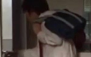 Asian Girl Giving Blowjob For Schoolguy In The Locker Room