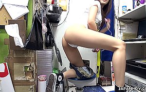 Japanese teen brunette, mikuni maisaki is masturbating at work, uncensored HD