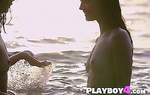 Sexy teen babe Cara Pin enjoyed on the beach with her lesbian petite friend Elilith Noir Small tits lesbians posed for a camera before perfect models became so wet and started to striptease in the water