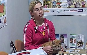 Big breasted blonde stripling sister suck and fuck old vet 's humble dick
