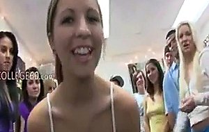 Group of sweet girls bang on college