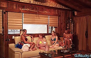 Lacy Lennon Lily Larimar Indica Monroe and Apryl Rein are ready to go to a beach party but are stopped by a sudden downpour But someone quickly proposes that they have their own INDOOR beach party saying that they can do pretty much EVERYTHING