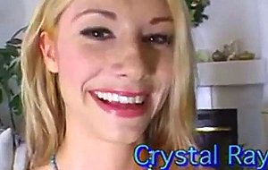 teeny blonde sucking on two cocks