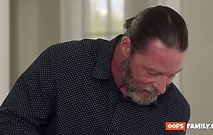 The stepfather only had to accept the fact. Tired of fitting, Leanna decided to relax in stepdad's admiring kisses. They could no longer hold back. At that moment they both know each other's intentions. Leanna instantly began licking her stepdad's dick, and without delay he shoved it down her throat. A blowjob left Leanna's pussy dripping for more. Finally, stepdad put his petite stepdaughter on the table and pushed himself deep into her tight fuck hole. From that position, her nice boobs shook with each thrust. Leanna felt his cock penetrating her pussy gently and sank into pleasure. She had heard that older men are much more experienced than her peers, but now she saw for herself. Leanna showed great enthusiasm as she climbed on top of him and threw her whole body into screwing her stepdad. Getting down on her knees, she moaned with excitement as stepdad slid his hard-on back in her mouth to feel her wet tongue wrapped around his cock before he pulled it out and came all over her pretty face.