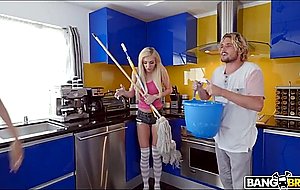 Una adolescente rubia no puede dejar de correrse en la cocina mientras su hermano se la folla