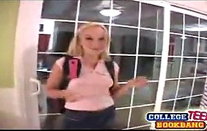 Slutty coed blonde puts her teen lips and tongue on a hard cock