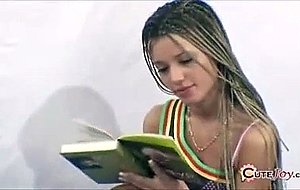 Hot teeny reads a book in bed and gets naked showing off her perky titties and cute little ass