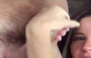 Beautiful brunette teenie giving a steamy handjob