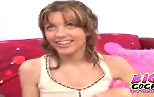 Wavy haired teen shows her big cock addiction in some nasty baloney bopping
