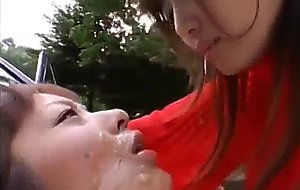 Lesbianas japonesas juegan en el coche