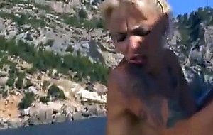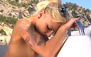 Hot blonde lesbian babes on a boat