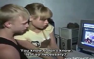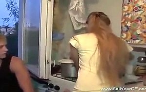 When the guy returned back from work that day, he was unpleasantly surprised to find out that there was no food at home. Actually, they had only two pieces of bread but that was not enough for him. That is why he talked his petite and very kinky girlfriend into fucking his well-to-do friend.
