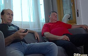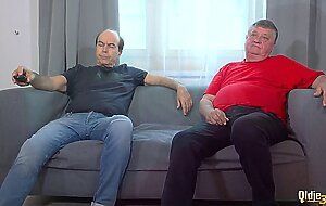 Add "Teen brunette showing 2 grandpas a good time with a hot footjob and cumshot on her pussy" a tu lista de reproducción.