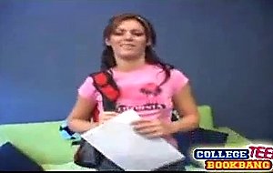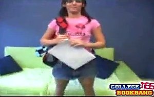 Brunette college slut has her ankle held as her teen pussy is drilled