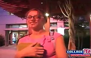 Blonde teen coed cutie in glasses cowgirl rides a strange dick for money