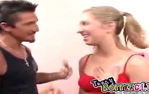Blonde teeny bopper in pig tails gets her ass spanked then a massive facial