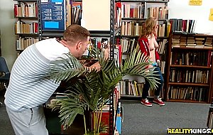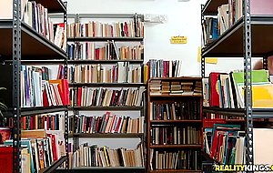 Curvy and nerdy girl got her face sprayed with cum in a library