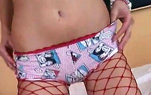 Sweet teen oleysa in her fishnets sucking cock like pro