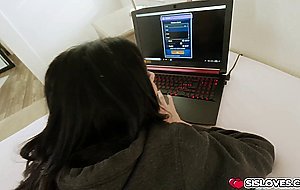 7:07Rosalyn is in her stepbros room and using her laptop Her stepbro tries to kick her off his laptop but she will not budge To cure her laptop addiction he whips out his big cock and takes of her panties and fucks her tight cooch from behind