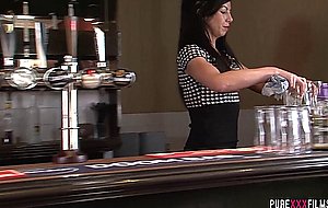 Gina Jameson is working hard in her own pub and her lazy husband finally left to stock up. The minute he leaves she jumps on the phone and calls her favorite cock Seth to have some fun. Seth immediately leaves his job and races over to Gina to give her what she wants; a good hard fuck in the middle of the pub!
