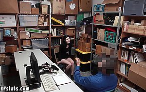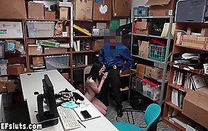 Pale skinned brunette teen shoplifter Ivy Aura with small tits has to fuck a LP officers big cock after the interrogation to avoid jail but first she is tasting the hard meat