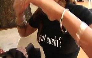 Asian hottie Taya Cruz shows her bald pussy before she sucks