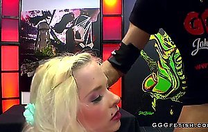 Blonde sexy teen with small tits in lingerie ariella gets pounding with gangbang and cumshots while she gives amazing oral blowjobs