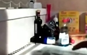 Emo teen fingers her pussy in kitchen